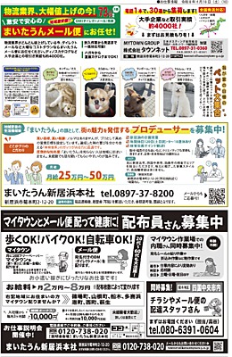 MYTOWN(マイタウン)は、生活情報紙「まいたうん」をはじめとした、メール便やポスティング事業を中心とした、愛媛県東予を拠点とする企業です。