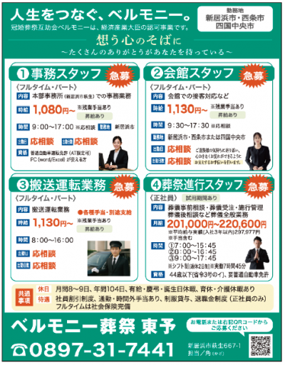 ベルモニー葬祭 東予 事務スタッフほか