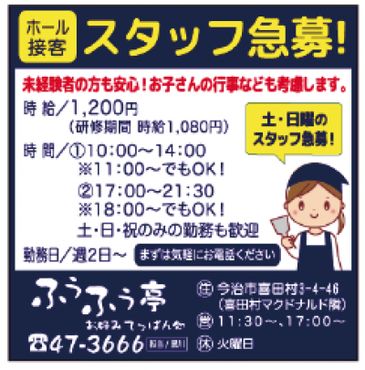 ふうふう亭 ホール接客スタッフ