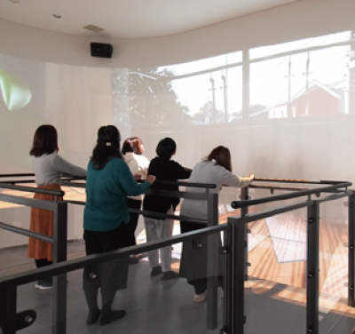 防災センター1階は、地震の揺れを映像と一緒に体験する装置や火事、水害をVRで体験できる装置など、災害対応力を身につけるための体験型施設になっており、2階は大型スクリーンを設けた防災学習ゾーンとなっています。